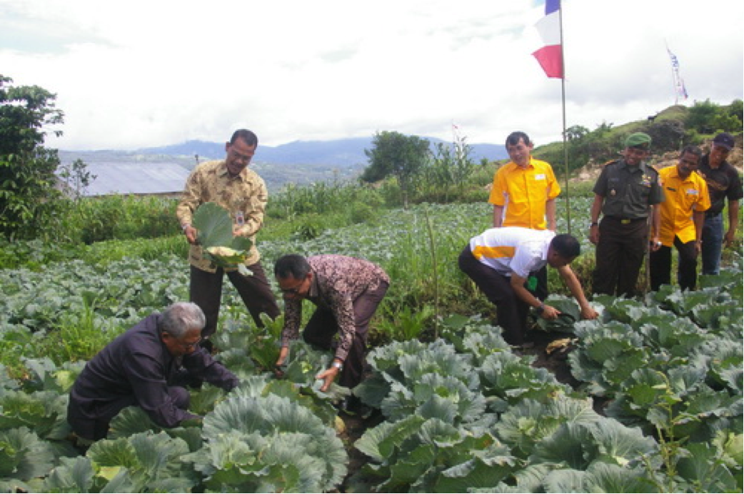 Kepala Badan Litbang Pertanian Kementrian Pertanian RI dan rombongan sebelumnya melakukan kunjungan ke kebun kelompok yang membudidayakan tanaman kol dan tomat.