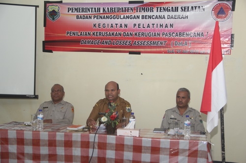 “Kabupaten TTS secara sosial ekonomi, geografis, klimatologis maupun hidrologis rentan dan rawan terhadap berbagai kejadian bencana seperti gempa bumi, tanah longsor, cuaca ekstrim, kekeringan, kebakaran, tsunami, wabah penyakit, konflik sosial dan lain sebagainya,” ujar Sekretaris Daerah Kabupaten Timor Tengah Selatan, Drs. Salmun Tabun, MSi /Kepala Badan Penanggulangan Bencana Daerah/ Ex Officio, ketika membuka kegiatan Pelatihan Penilaian kerusakan dan kerugian Pasca Bencana /Damage and Losses Assessmen di Hotel Gajah Mada SoE (25/7/2016)