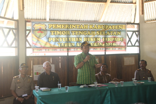 Demikian yang disampaikan oleh Sekretaris Daerah Kabupaten Timor Tengah Selatan, Drs. Salmun Tabun, M.Si saat membuka acara Penyuluhan Hukum Terpadu di Aula SD Negeri Oelet Kecamatan Amanuban Timur, Kamis (8/9/2016).